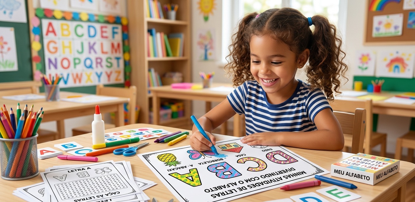 Ao contrário do que muita gente pensa, aprender letras não significa apenas decorar o alfabeto. A criança precisa construir aos poucos a relação entre forma, som, repetição e significado. É exatamente aí que entram as atividades educativas: elas ajudam a criar esse contato inicial com a linguagem de um jeito natural.